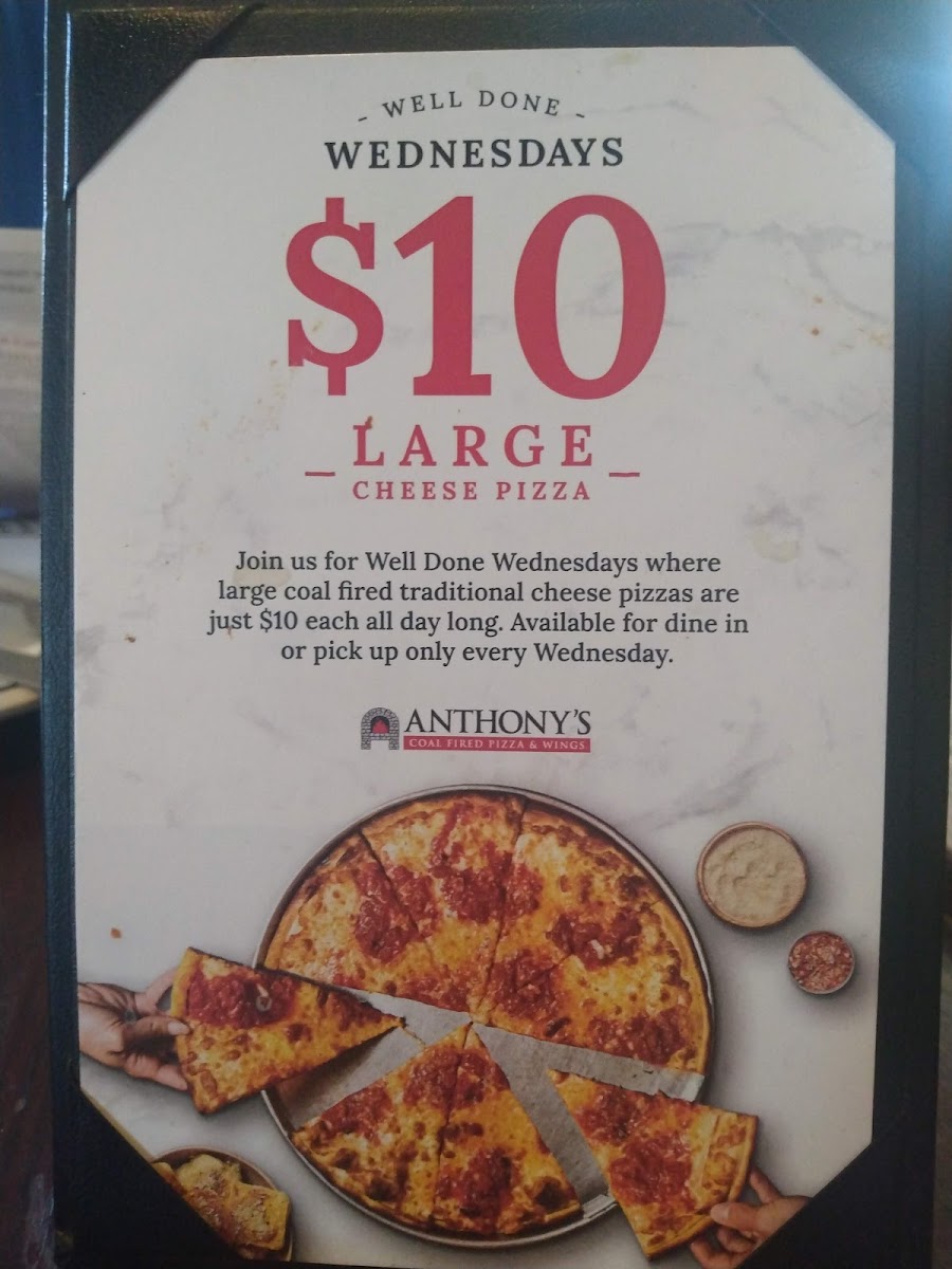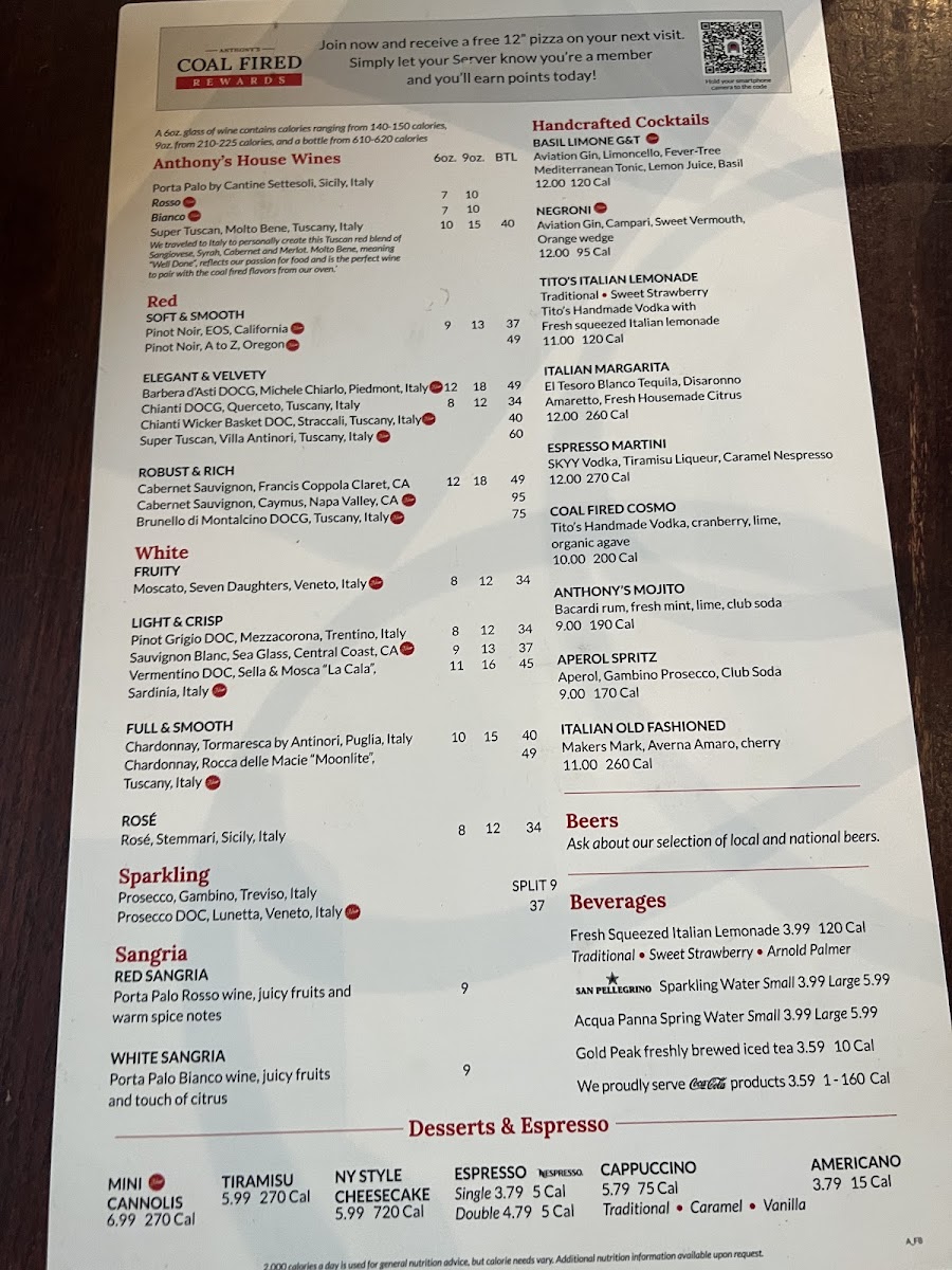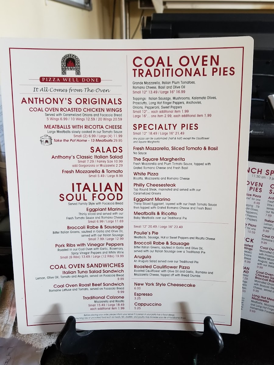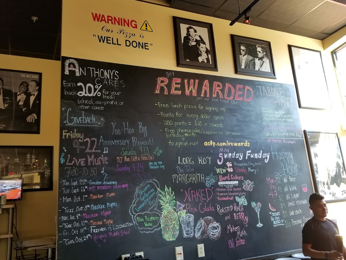 “ My friend and I are patrons at Anthony’s every single week, and we are always so happy. We are personally greeted by the staff, beginning with Giovanni, the Mgr/pizza chef, other cooks, waiters, waitresses and bartenders. I am gluten sensitive and get the gluten friendly pizza each and every time. It’s delicious! This morning, Giovanni called me to tell me that they were out of the crust, had tried other suppliers and wouldn’t have it for this evening. He didn’t want me to be disappointed!!! Seriously?? He is amazing!! ”